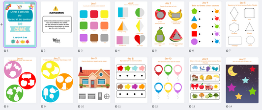 Une collection pour enfants pensée pour leurs premières découvertes : livrets 18-24 mois, jeux éducatifs, PDF, cartes cadeaux, accessoires et supports pédagogiques pour éveiller leur curiosité et stimuler leur développement ludique.