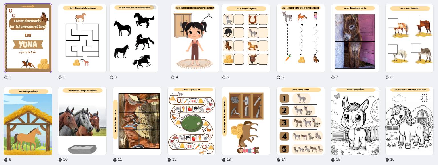 Livret d'activités sur les chevaux et ânes